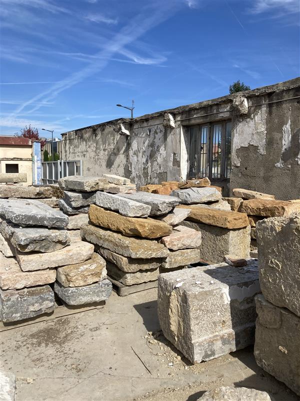 Le réemploi ex-situ se concentrera sur les pierres remarquables représentent une quinzaine de palettes (pierre dorées / linteaux/ pignons / monoblocs / …).