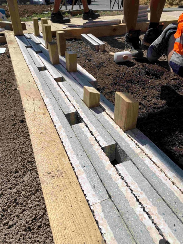 Cette opération s’inscrit dans la continuité de l’étude de faisabilité de découpe industrialisée de dalles transformées en pavés et posées sur tranche (étude pilotée par V.Grunewald).