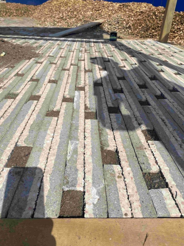 – Modalité 2 : Matériaux entièrement issus du réemploi (pavés produits à partir de la transformation de dalles gravillonnées, plantes proviendront d’une pépinière locale avec certaines provenant d’une pépinière de plantes de réemploi…).