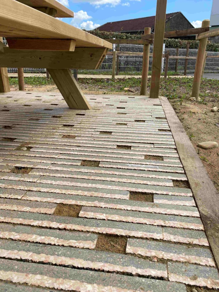 Dans le cadre des travaux de désimperméabilisation de la cour d’école Marie Curie, l’expérimentation vise à réaliser deux placettes de 5m² en pavés végétalisés avec deux modalités différentes :