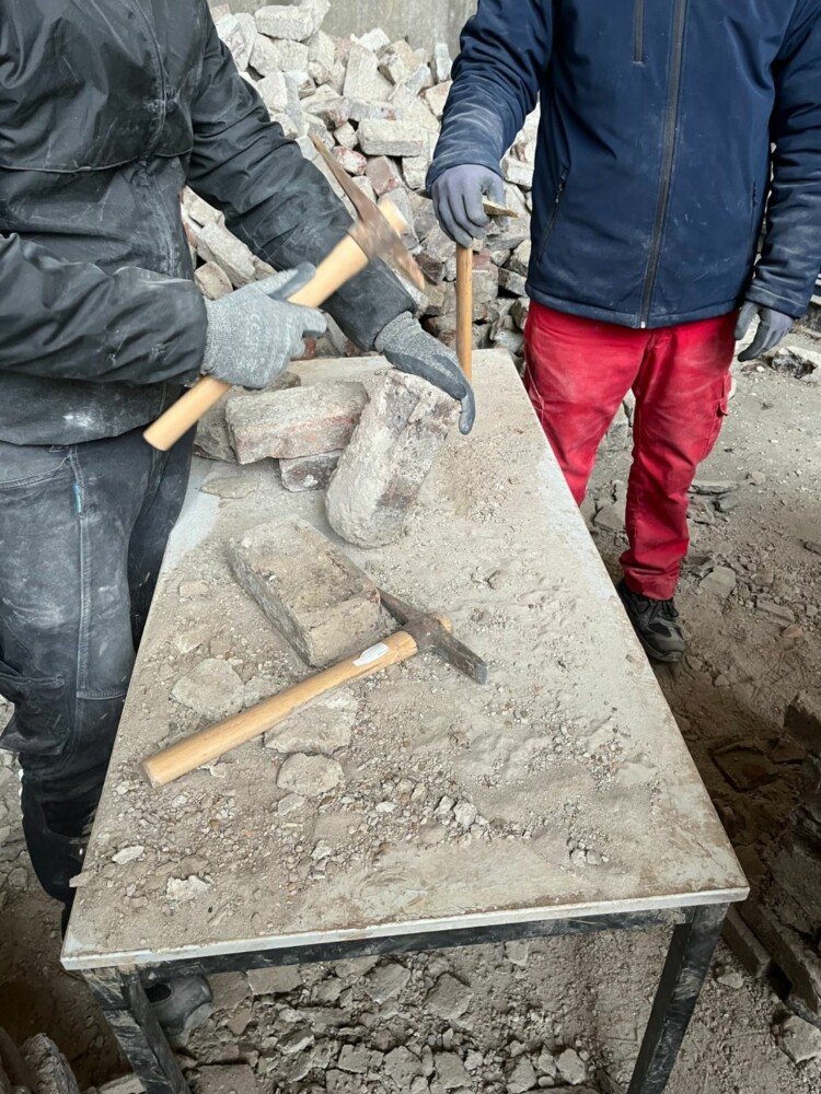 Le soutient Ecominéro a permis de réaliser, sur une phase de test, un nettoyage manuel d’un échantillon de 5000 briques en 5 jours, afin de valider le processus de réemploi sur les 130 000 briques.